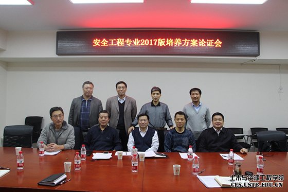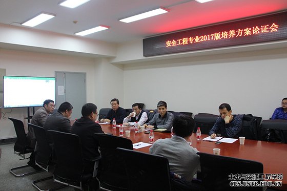 2016年12月9日下午2点,安全科学与工程系在土环楼214召开了安全工程2017版本科生培养方案的专家论证会,邀请的校外专家有中国矿业大学(北京)的傅贵教授、北京理工大学的钱新明教授和煤炭科学研究总院的樊少武教授,校内领导和老师有土资学院党委书记兼安全学科带头人金龙哲教授、教学院长李长洪教授、系主任张英华教授、系书记黄国忠副教授、系教学主任黄志安副教授和蒋仲安教授。会议由教学主任黄志安老师主持。