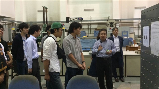 交流期间,宋波带领横滨国立大学师生参观了我校结构实验室,他介绍了结构实验室的基本情况,并结合正在做的吸收塔振动台试验详细的阐述了该实验模型设计、制作以及所产生的试验现象。随后,双方结合实验室的基本情况开展了座谈会。