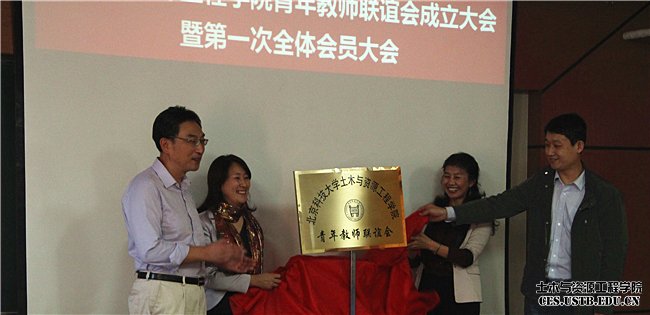 王媛宣读了tyc7111cc太阳成集团青年教师联谊会第一届理事会人员名单,并与与会嘉宾共同为联谊会揭牌。