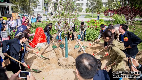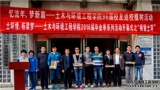 4月16日下午,土木与环境工程学院96届校友返校植树活动暨2016届毕业季活动开幕式之“根留土环”在学院楼前广场举行。土木与环境工程学院党委书记金龙哲、院长王媛、后勤集团党委书记张俊燕校友、教务处副处长林海、学院学生工作负责人邓波、资源工程系书记李克庆,及校友和学院教师、毕业生代表出席活动。活动由学院行政副院长耿倩男主持。