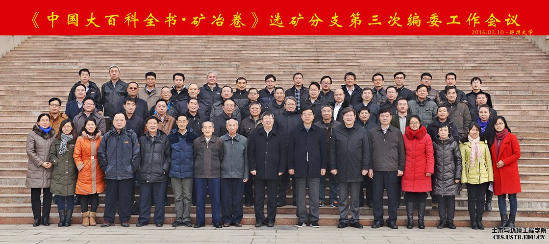 2016年1月9日至10日,我院矿物加工工程系孙体昌教授、孙春宝教授、倪文教授、郝红英副教授和傅平丰副教授一行参加了在郑州大学召开的《中国大百科全书?矿冶卷》选矿分支第三次编委工作会议。来自全国近30所矿冶学科领域最具代表性的高校、研究院(所)、企业的70余名专家学者参会。本次会议由北京矿冶研究总院主办,郑州大学承办,会议由选矿分支总编孙传尧院士主持。