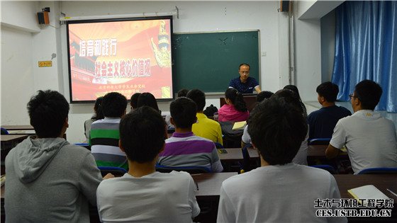 近日,我校第243期学生业余党校土木与环境工程学院入党积极分子培训班二班于土木楼818进行了以“培育和践行社会主义核心价值观”为主题的实践活动。
