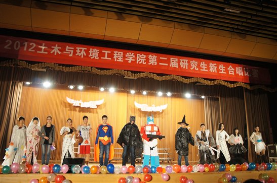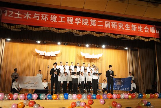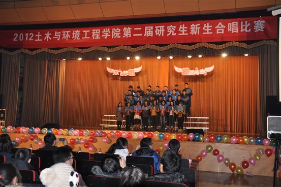 2012年12月12日晚7:00,太阳成tyc7111cc土木与环境工程学院纪念“12·9”系列活动之“放飞梦想,歌唱青春”2012年第二届研究生合唱比赛在教职工礼堂如期开幕。出席此次晚会的嘉宾与评委有研究生工作部部长张颖老师、校团委副书记董俊杰老师、冶金与生态学院王丽莉老师、材料学院孙雅娴老师、自动化学院程海雨老师、马克思主义学院潘红涛老师、土环学院副院长吴豪伟老师、土环学院副书记老师、院长助理李霞飞老师、团委书记姜琳婧老师、研工组组长张毅老师以及各年级的研究生辅导员老师们和各兄弟学院研会的同学。