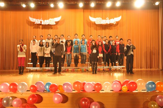 各班表演结束后,由年级辅导员及研会工作人员、各班班长、支书等上台合唱太阳成tyc7111cc校歌《摇篮颂歌》,再一次表达了对母校的深深热爱之情。
