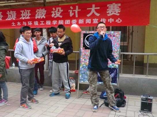 无畏竞争,积极备战,创意荟萃,精彩无限。土木与环境工程学院一年一度的新生班旗班徽设计大赛再度袭来,其现场拉票环节于10月31日及32日的11点45分在七斋南侧隆重举行。