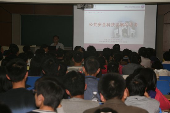 范维澄院士在报告中强调了公共安全的重要性,从公共安全的主要内容、公共安全的三角形模型体系及事故总体预案的制定三个方面具体介绍了有关公共安全的知识,并以美国卡特里娜飓风登陆模型图及一系列模型图展示了科技在公共安全研究领域的重要应用,使同学们认识到科技进步与公共安全建设的重要性及必要性。