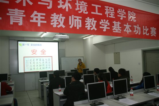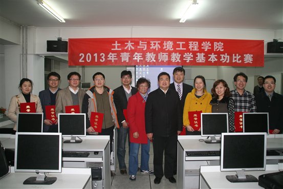 土木与环境工程学院2013年青年教师教学基本功比赛经过系所预赛和学院大赛两个阶段,于4月11日圆满结束,来自五个系的12名青年教师参加了学院大赛。此次比赛由学院教学委员会和学院工会联合组织。