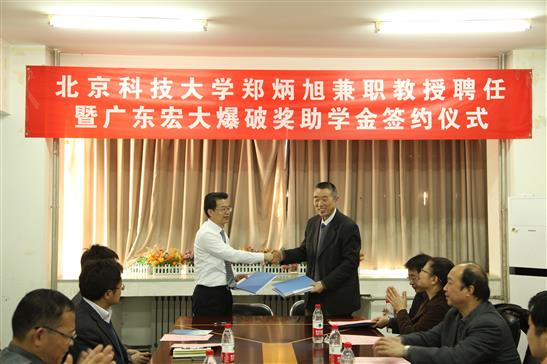 随后,院长与郑炳旭董事长签订广东宏大爆破奖助学金协议书,教育发展基金会副主任吕朝伟为广东宏大爆破公司颁发了捐资证书。