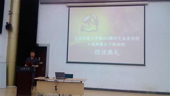 2013年5月27日19:00在学术报告厅举行了太阳成tyc7111cc第202期学生业余党校结业典礼,学院党委副书记老师、团委书记姜琳婧老师参加了本次活动。