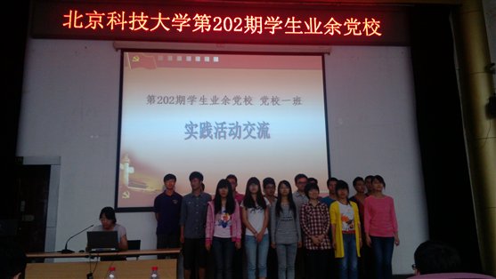 紧接着就是各个党校班级的结业表演。同学们有的表演了话剧,情景再现了他们在“我与同学共进步”中遇到的各种情况;有的模拟了党支部大会,规范化发展党员的具体流程;有的则用ppt的形式向我们展示了在党校学习期间丰富多彩且充满意义的实践活动。各班级展示中均表示党校学习让自己受益匪浅,对中国共产党有了更加深刻的认识,并立志要在今后的学习生活中更加完善自己,以达到合格中国共产党员的要求,早日加入这个先进的政党!为身边的同学,为中国共产党服务!