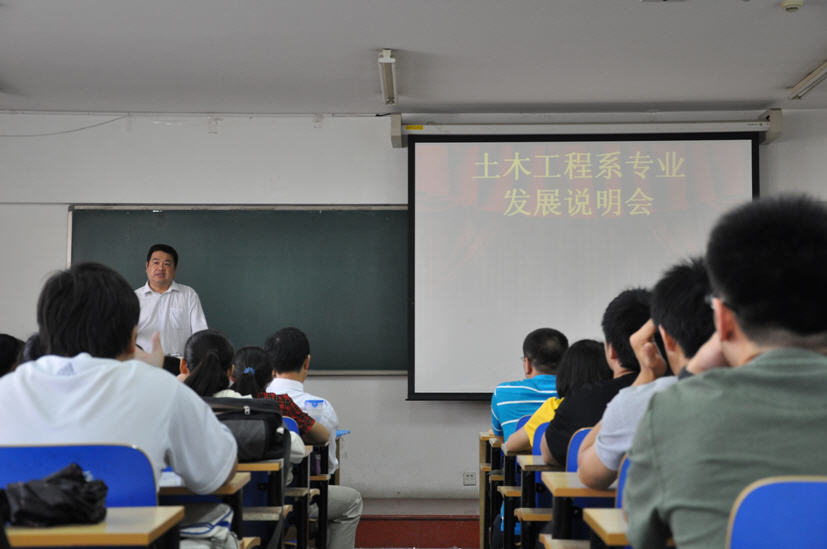 晚上六点,在一阵阵热烈的掌声中伴随着支持人的宣布,此次活动正式开始,首先由李教授对活动致开幕词,并对活动给予了高度评价,他简单介绍了此次活动的意义,希望能给同学们的发展带来帮助,并祝愿大家的未来一切美好。主任教授主要就土木工程专业前景以及未来所面临的机遇挑战做了全面透彻的分析;书记副教授就学生最为关心的就业前景作了全面细致的分析;副主任教授结合我校研究生现况,为学生讲解有关研究生的各项问题;副主任副教授就同学们在本科阶段的学习及后期的职业发展进行了详细的讲解;副主任、副书记教授结合自己亲身的经历,为学生在出国方面的各项问题进行了全面的讲解。各位老师从当代社会出发,从各方面入手,剖析土木的未来,把最新的信息传递给学生。最后,活动进行了现场问答互动,帮助学生更好的了解所学专业,同时为学生走近专业老师提供了很好的机会。最后在一片热烈的掌声中活动圆满落下帷幕。