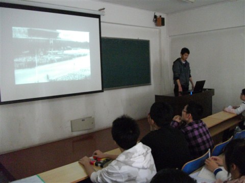 此次会议选择的红**是《开国大典》,在电影放映之前,首先由团支部书记王建超同学对这部电影做简单介绍,同时对同学们在观看电影过程中应该留心和注意的问题,并要求同学们做好相关的笔记。
