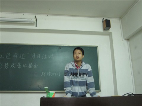 学期过半,应学校团委要求,环境0901班于2011年4月22日星期五举行了主题团日活动。因2011年恰逢伟大的中国共产党建党90周年,我班本次的团日活动主题即为“寻找红色奇迹”,以此来向中国共产党致敬。同时,我班支书也别开生面的将形势政策分析与之结合在一起,使本次的团日活动更加生动和丰富。