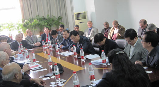 由美国土木工程学会前会长D. Wayne Klotz 先生为团长的33位专家教授,在土环楼与我校相关业界专家教授们欢聚一堂,共同就目前国内外城市基础设施建设的长期规划以及可持续的设计与建造进行了探讨。出席交流会议的有院党委书记教授、土木系主任教授、土木系副主任教授、教授、教授、副教授等,交流会由教授主持。