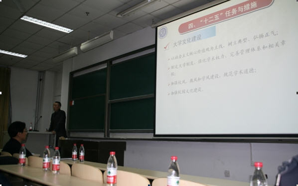 会上,院长通报了学校“十二五”规划相关内容,结合学校“十二五”发展规划,提出了学院“十二五”期间在学科建设、人才培养、队伍建设、等方面的初步发展目标,并布置学院新学期工作思路及工作重点。