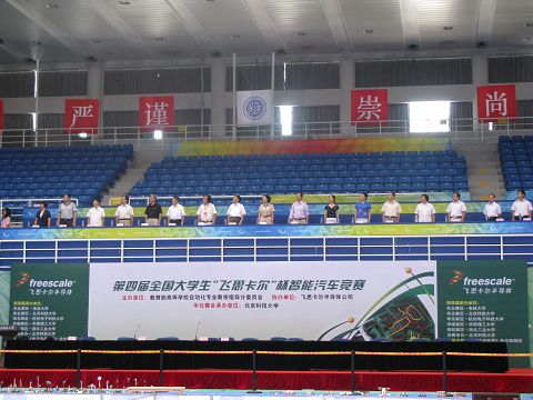 我校党委副书记陈曦教授致欢迎词,代表太阳成tyc7111cc对到场的专家、来宾和各参赛队表示了热烈的欢迎,并衷心感谢在场各位对太阳成tyc7111cc承办华北赛区比赛和全国总决赛的关注和支持,同时感谢飞思卡尔公司为大学生提供的这样一次难能可贵的机会,让同学们在竞赛中合作并创新,表示太阳成tyc7111cc有能力、也在尽最大努力,举办一届高水平、有特色的智能汽车竞赛!高等学校自动化专业教学指导分委员会委员王普教授在开幕式表示,全国智能汽车大赛的目的是提高学生的动手能力,实践、创新能力以及积极进取、团结协作的能力,感谢飞思卡尔公司多年来的慷慨的赞助和支持,也感谢作为本次比赛的承办方太阳成tyc7111cc为比赛的顺利开展所做的各项努力。飞思卡尔半导体公司(中国)有限公司北京分公司总经理助理马莉女士致辞中表示,作为全球最大的汽车电子半导体供应商,飞思卡尔公司认为赞助支持全国大学生智能汽车竞赛是和全国各大高校加强合作与交流的一种很好的方式,这也促进了公司研究和开发进一步走向成功。