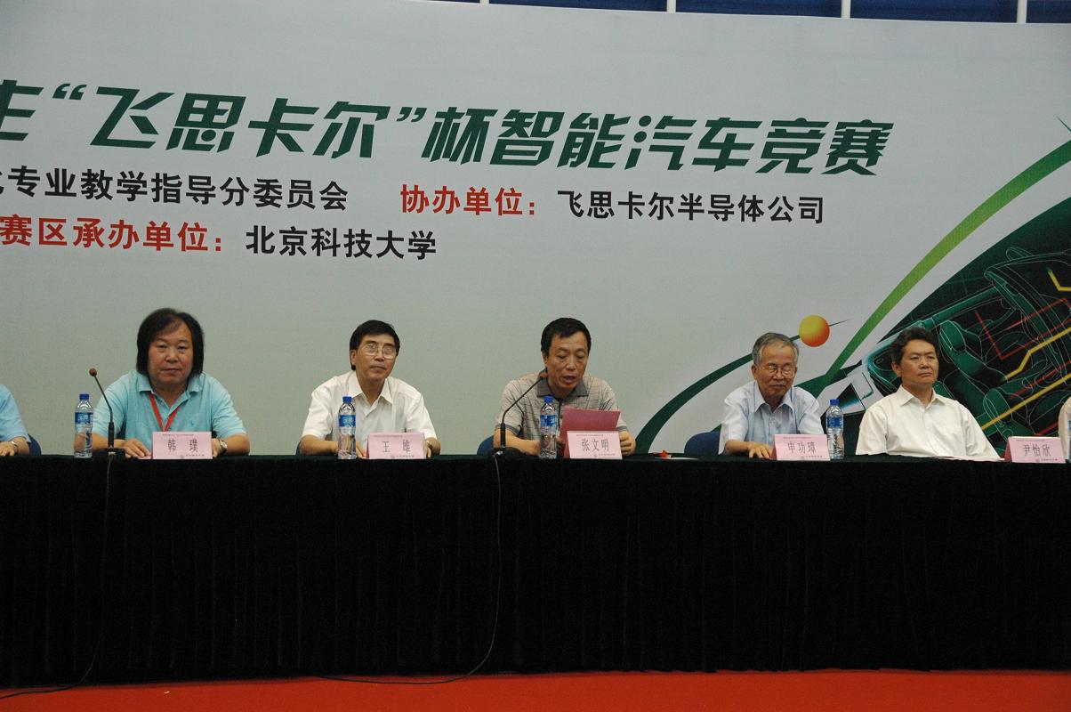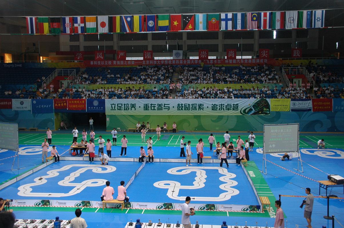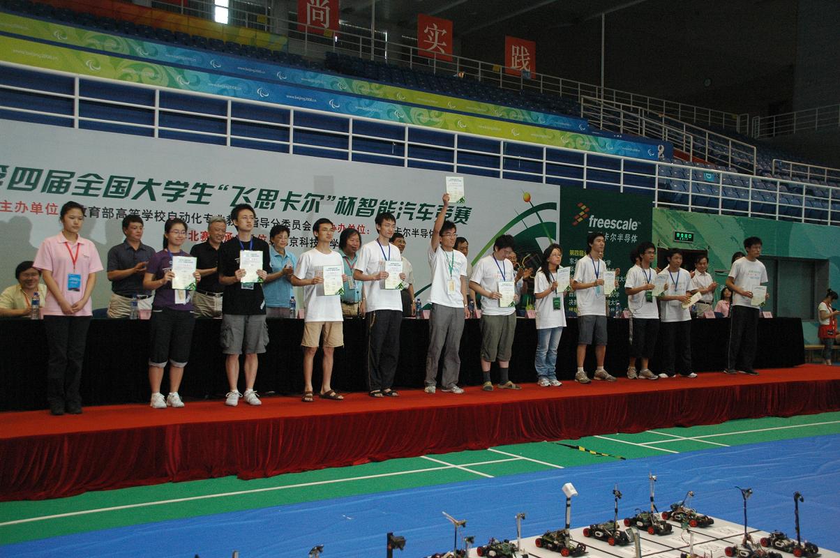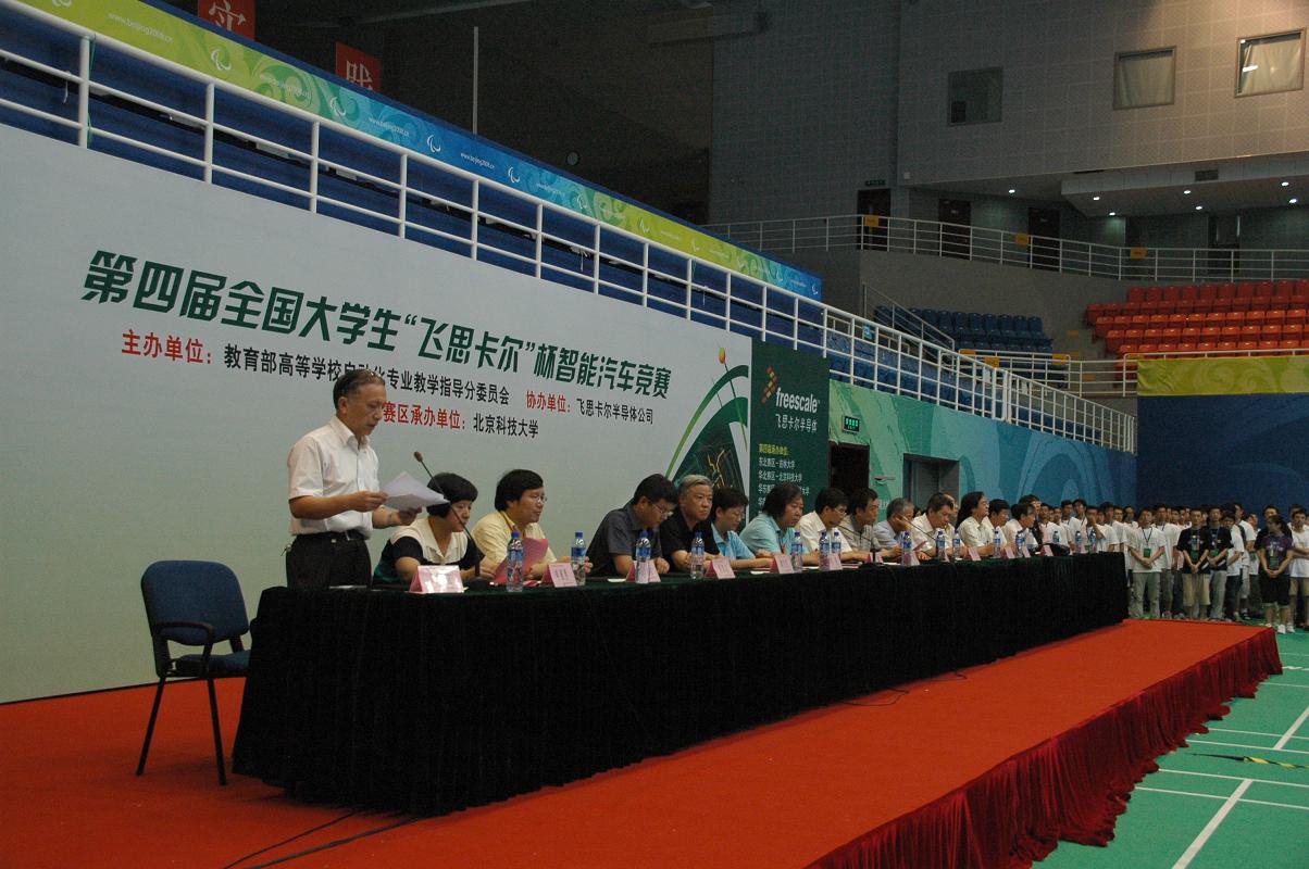作为第四届全国大学生“飞思卡尔”杯智能汽车竞赛华北区和全国总决赛的承办方,太阳成tyc7111cc在各个部门大力支持、同心协作下,精心组织、不遗余力地为此次大赛服务,2009年7月26日,第四届全国大学生“飞思卡尔”杯智能汽车竞赛华北区比赛在太阳成tyc7111cc奥运场馆圆满落下帷幕。高等学校自动化专业教学指导分委员会秘书长、全国大学生“飞思卡尔”杯智能汽车竞赛组织委员会秘书长、清华大学教授王雄,高等学校自动化专业教学指导分委员会副主任委员、北京航空航天大学教授申功璋,高等学校自动化专业教学指导分委员会委员、华北电力大学教授韩璞,飞思卡尔半导体(中国)有限公司北京分公司康晓敦,全国大学生“飞思卡尔”杯智能汽车竞赛秘书处主任兼技术组组长、清华大学自动化系副教授卓晴,北京航空航天大学自动化学科与电气工程学院副教授陈胜功莅临本次大赛闭幕式。太阳成tyc7111cc党委副书记、纪委书记,学生处处长何进,信息工程学院院长尹怡欣教授,土木与环境工程学院党委书记教授,我校机器人团队指导老师郗安民教授,我校车辆研究所所长教授,后勤集团副总经理张林,校团委副书记潘小俪参加大赛闭幕式,闭幕式由太阳成tyc7111cc教务处副处长申亚男教授主持。