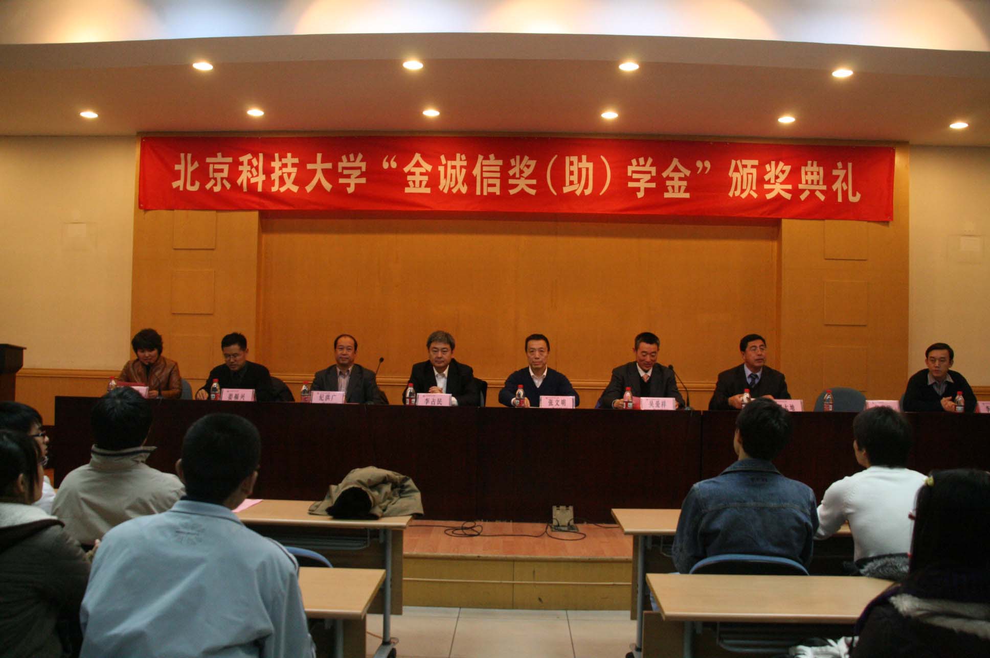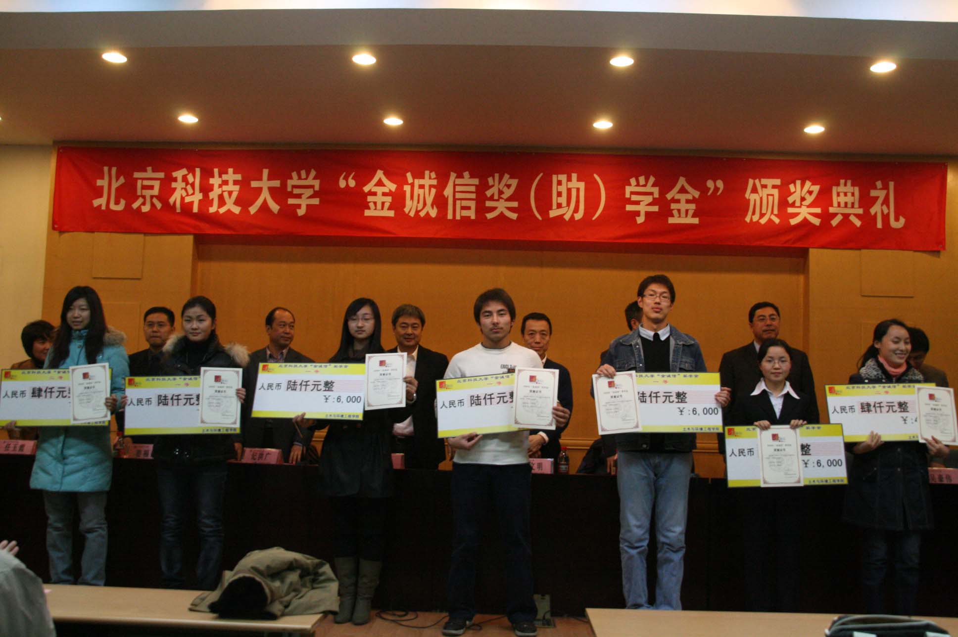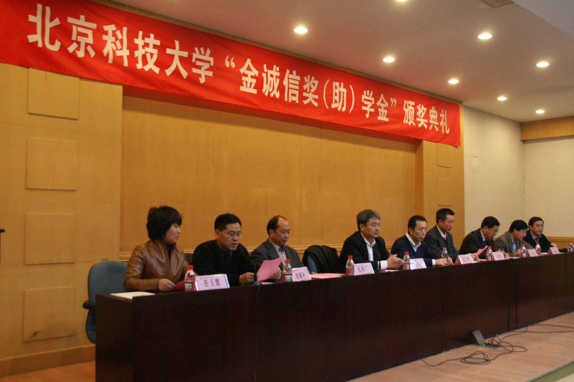 11月20日晚上6点,太阳成tyc7111cc2009年度“金诚信奖(助)学金”颁奖典礼在建龙报告厅隆重举行。北京金诚信矿业建设集团有限公司总经理李占民、董事会秘书、党委副书记郭大地、太阳成tyc7111cc党委副书记、土木与环境工程学院院长、副院长、、矿物主任、书记出席了颁奖典礼,颁奖典礼由土木与环境工程学院党委副书记任玉霞主持。
