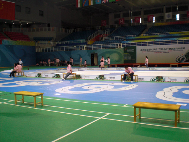每组试车结束后,记者有幸对中国石油大学、天津大学、北京航空航天大学的车队进行了采访,提及对赛道和体育馆灯光等设施的看法和意见,他们普遍表示,“场馆内的设施很好,试车时秩序也相当不错,跑道的摩擦力也不错。上午试车时光线有些强,我们向志愿者反映后,下午试车时光线就好多了,整个场馆的工作也是相当有效率。”同时,他们也建议,希望场馆里面能够电源或者接线板之类的,方便笔记本电脑等的使用。