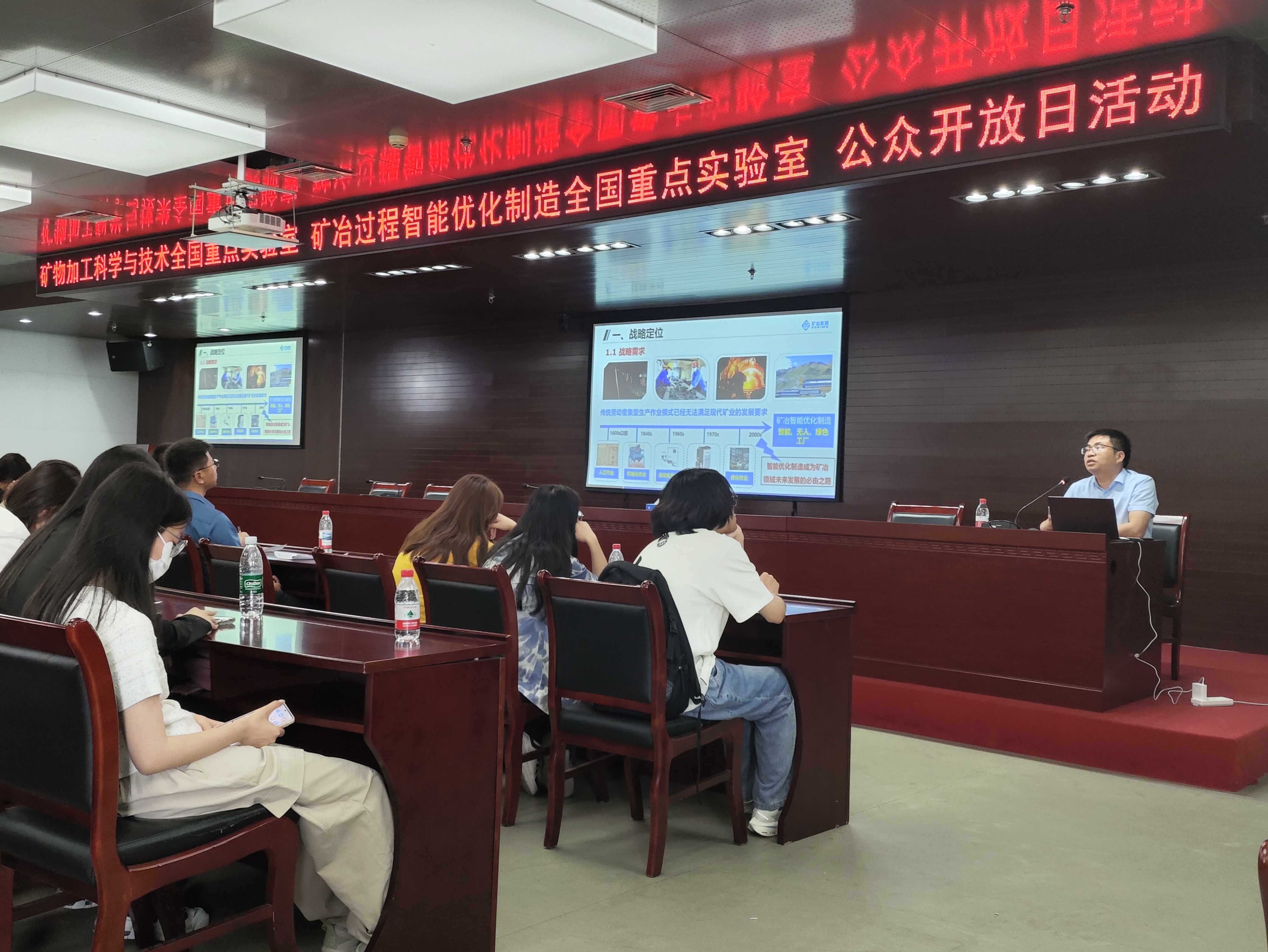 在综合部路亮主任的带领下,大家深入参观了矿物加工科学与技术全国重点实验室和矿冶过程智能优化制造全国重点实验室。从硫化矿选矿实验室、贵金属选冶实验室,到固体废弃物处理实验室,丰富的仪器设备与现场演示让同学们首次近距离接触前沿科研平台,也初步了解了采矿、选矿、冶金一体化的完整产业链。