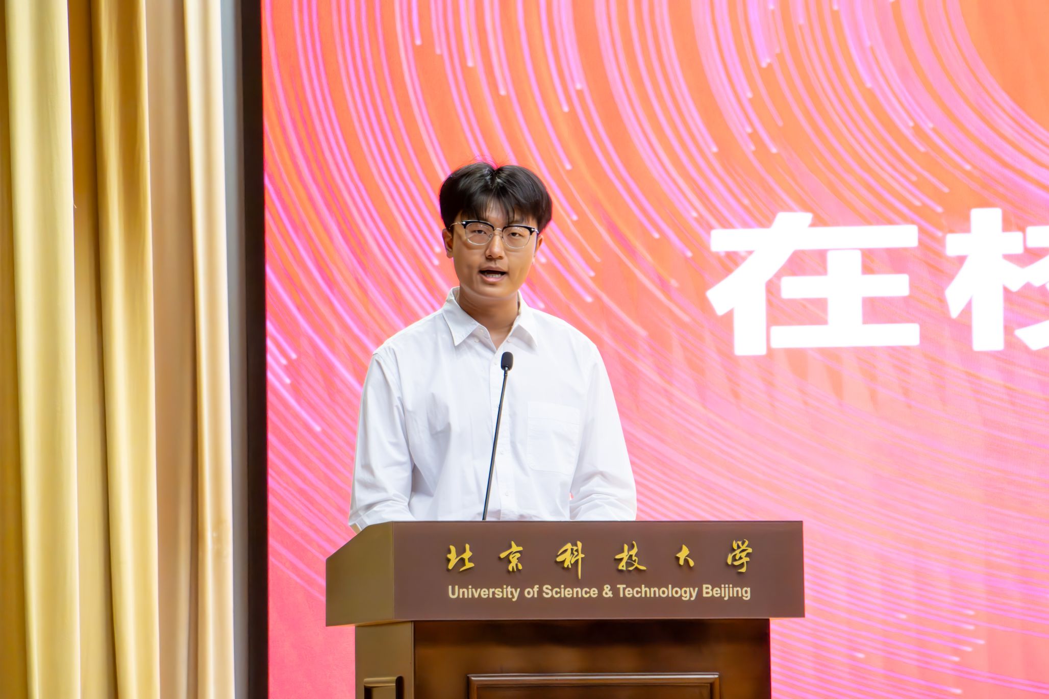 研究生新生代表、2025级采矿工程专业硕士研究生赵丽姗回顾了本科阶段在北科大的成长历程。她分享了在全程导师制支持下从科研新手到能够独立承担研究任务的转变,以及矿山实习和志愿服务带来的收获。她表示,将在研究生阶段保持好奇与热忱,专注学术、勇于创新、善于合作。