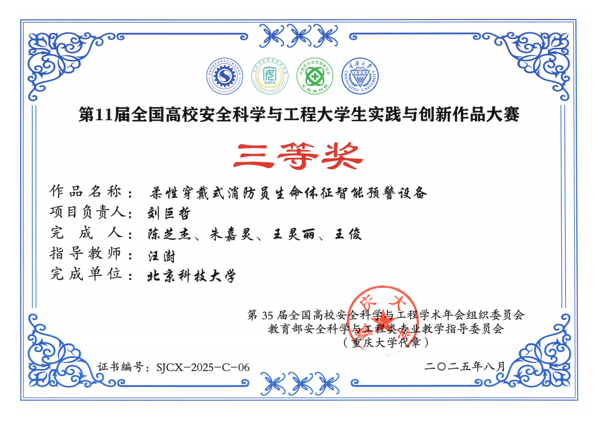 所获奖项:第11届全国高校安全科学与工程大学生实践与创新作品大赛国家级二等奖