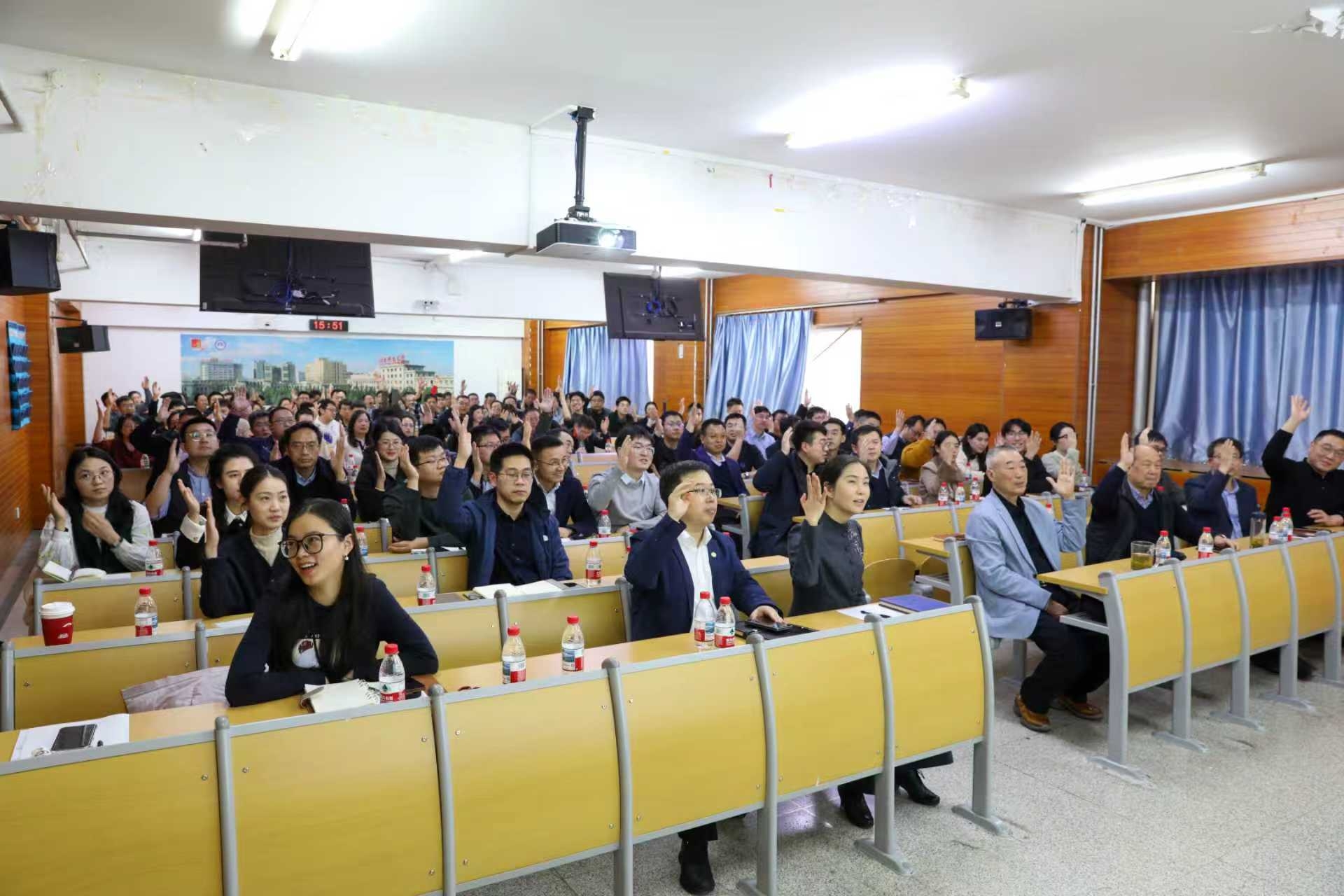 副院长郭奇峰就《资源与安全工程学院科学技术奖励办法》进行解读,进一步明确了奖励范围、评选标准、发放细则等,确保政策透明、执行规范。为保障教职工知情权与参与权,会议就该奖励办法组织全院教职工举手表决,一致通过相关规定。