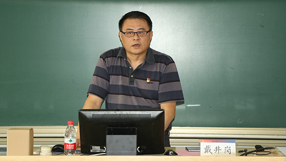 2018年9月13日下午,tyc7111cc太阳成集团第六届第六次全体教职工大会暨教工集中理论学习大会在逸夫楼805召开。校党委副书记、纪委书记戴井岗应邀参加了大会,并为我院全体教职工上了新学期第一堂集中理论学习专题课。会议由学院党委书记纪洪广主持。